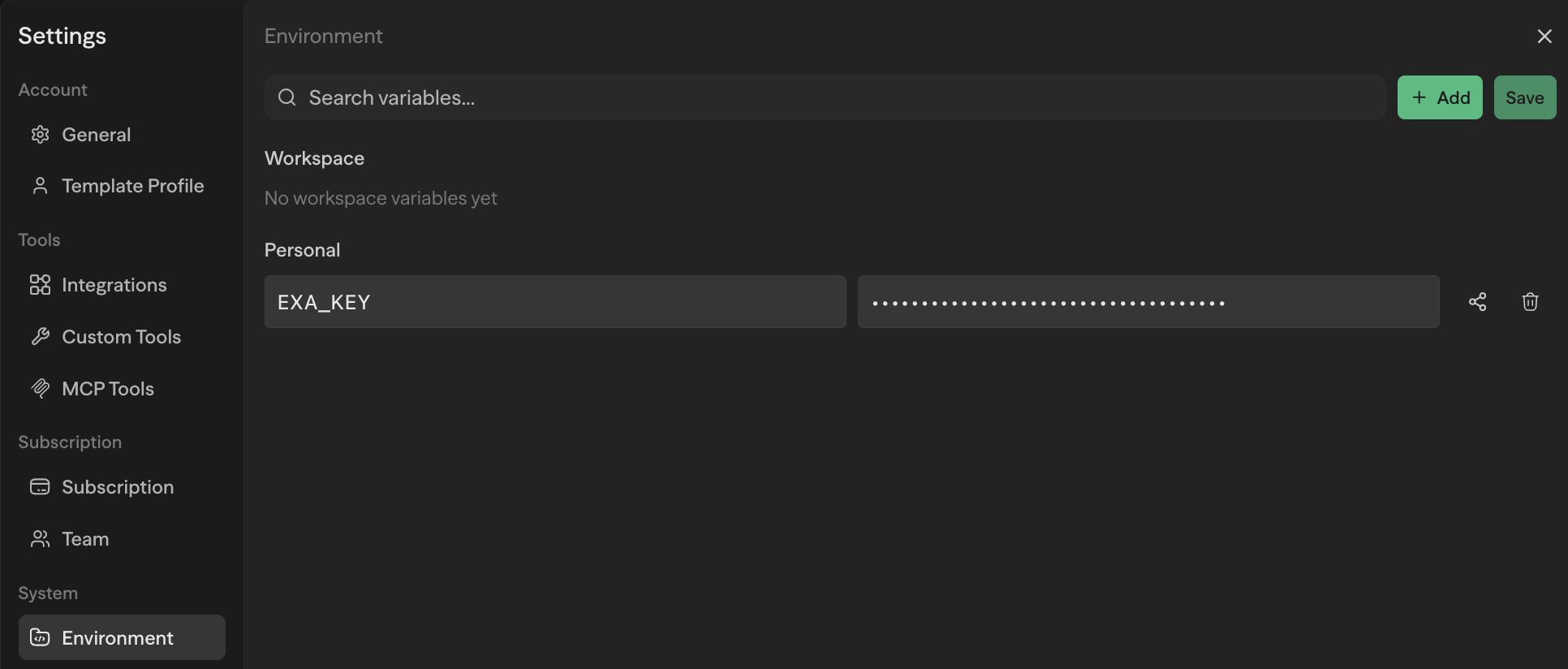 | Add environment variable | Settings → Environment Variables → Add | ![]() |