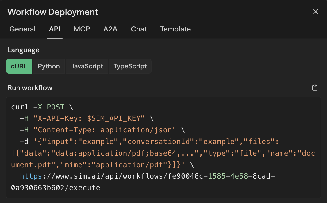 | Copy API endpoint | Deploy tab → API → Copy API cURL | ![]() |