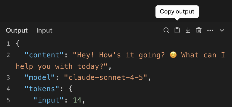 | Select output to view | Click dropdown in Chat panel → Select block output | ![]() |