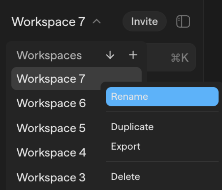 | Rename a workspace | Right-click workspace → Rename | ![]() |